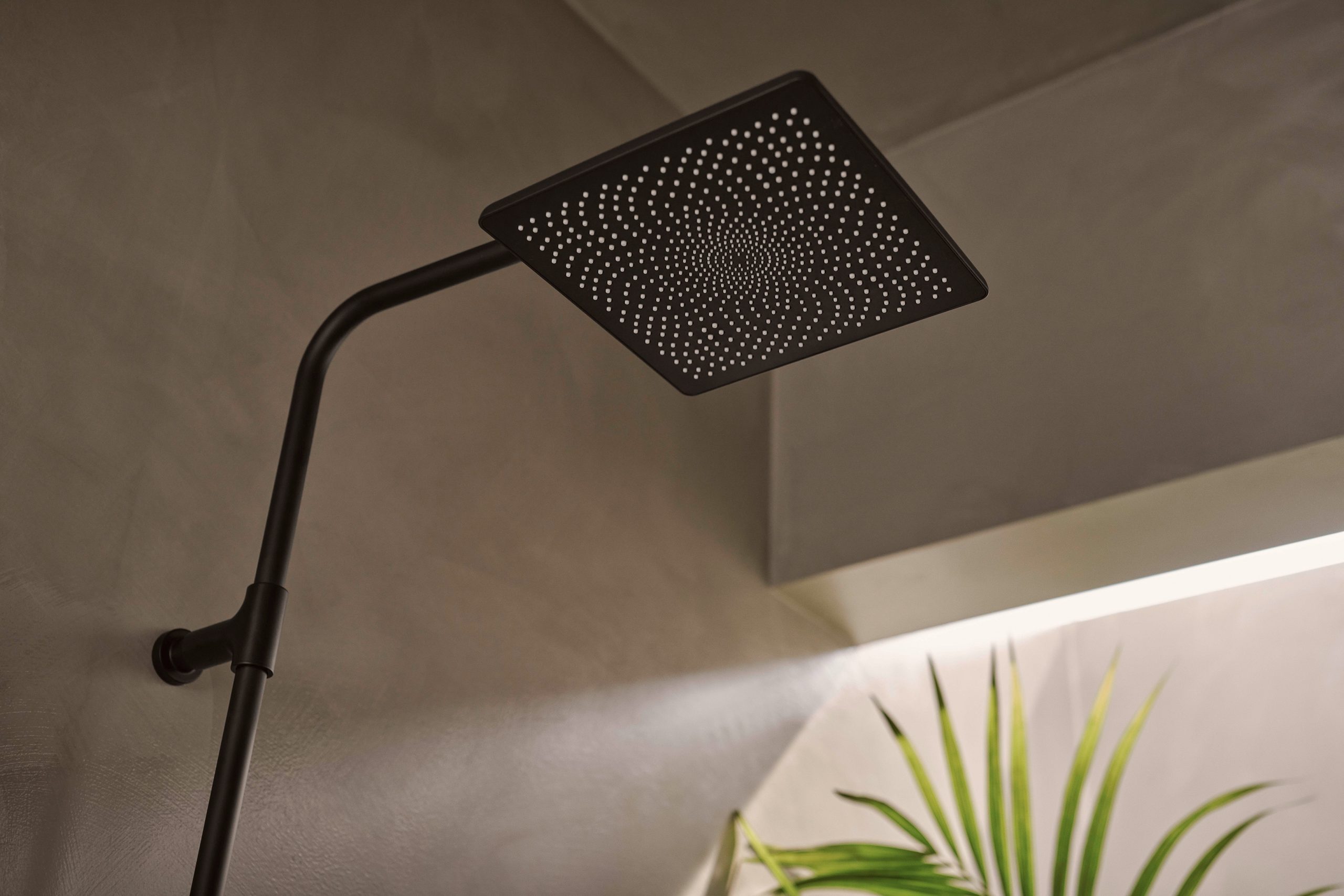 Was bei der Handbrause bereits im Kleinen umgesetzt wurde, zeigt sich bei der großen Kopfbrause in voller Pracht. Die Düsen sind in Form von Lotusblütenblättern angeordnet: Das Zentrum bildet einen dichten Wasservorhang, der am Körper entlang rinnt und ihn somit wärmend umhüllt, die Blätterblätter tragen das Wasser nach außen, kommen aber mit weniger Düsen aus. So wird das Duscherlebnis zugleich intensiviert und optimiert. Die Kopfbrause steht entweder mit einem Durchmesser von 300 mm in runder Form oder mit 250 x 250 mm in quadratischer Form zu Verfügung.